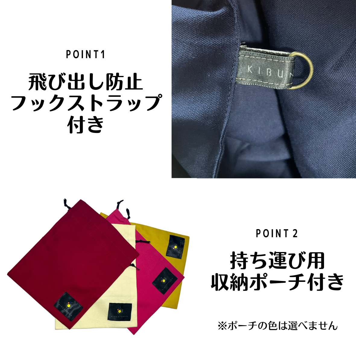 - 独自のデザイン: 肩紐は幅広に作られているので、長時間のご利用でも疲れにくいデザインとなっています。