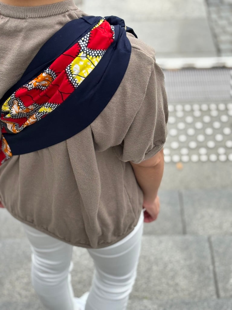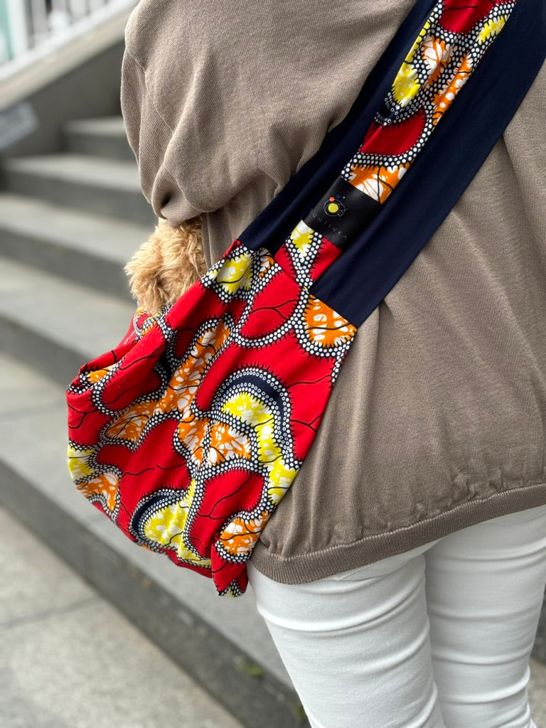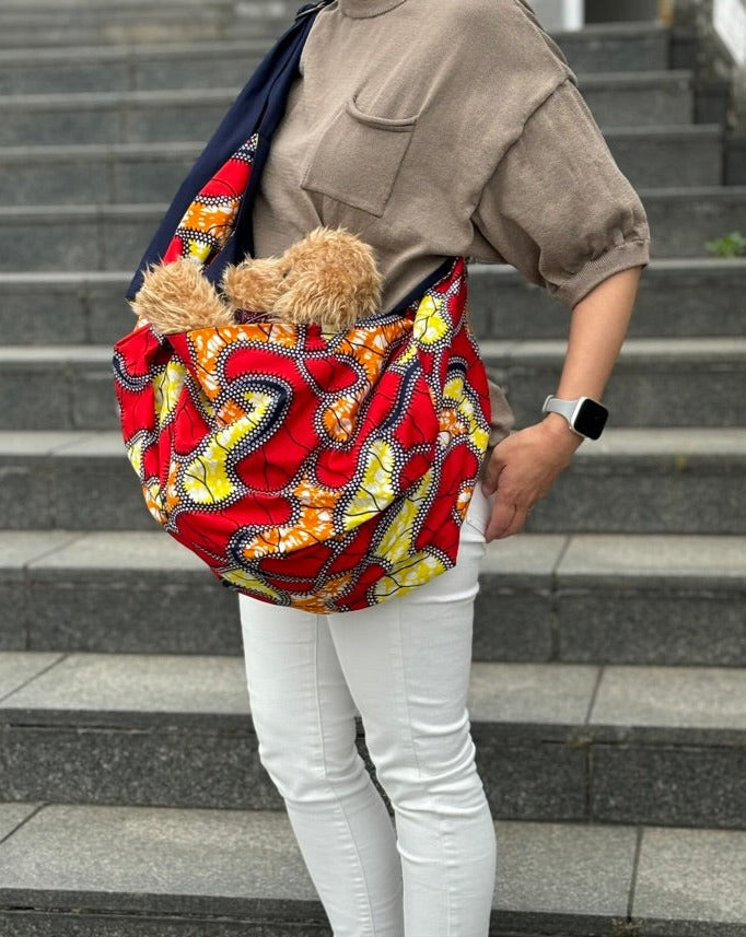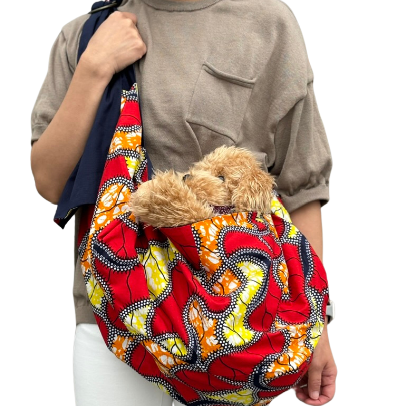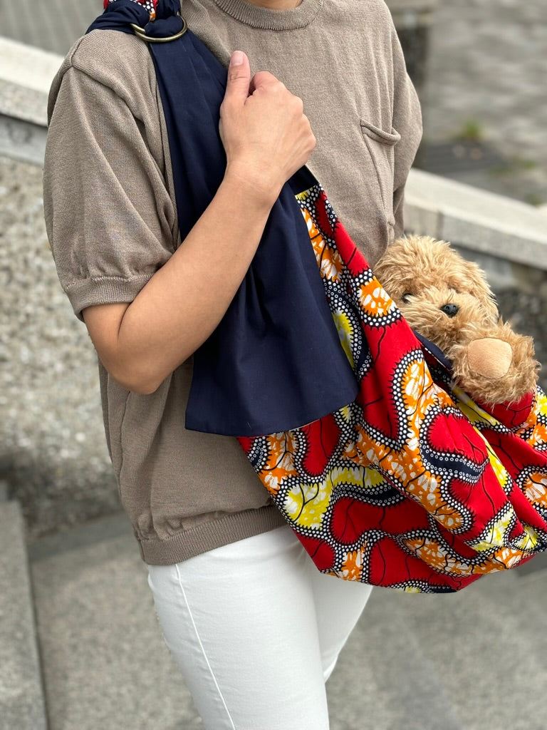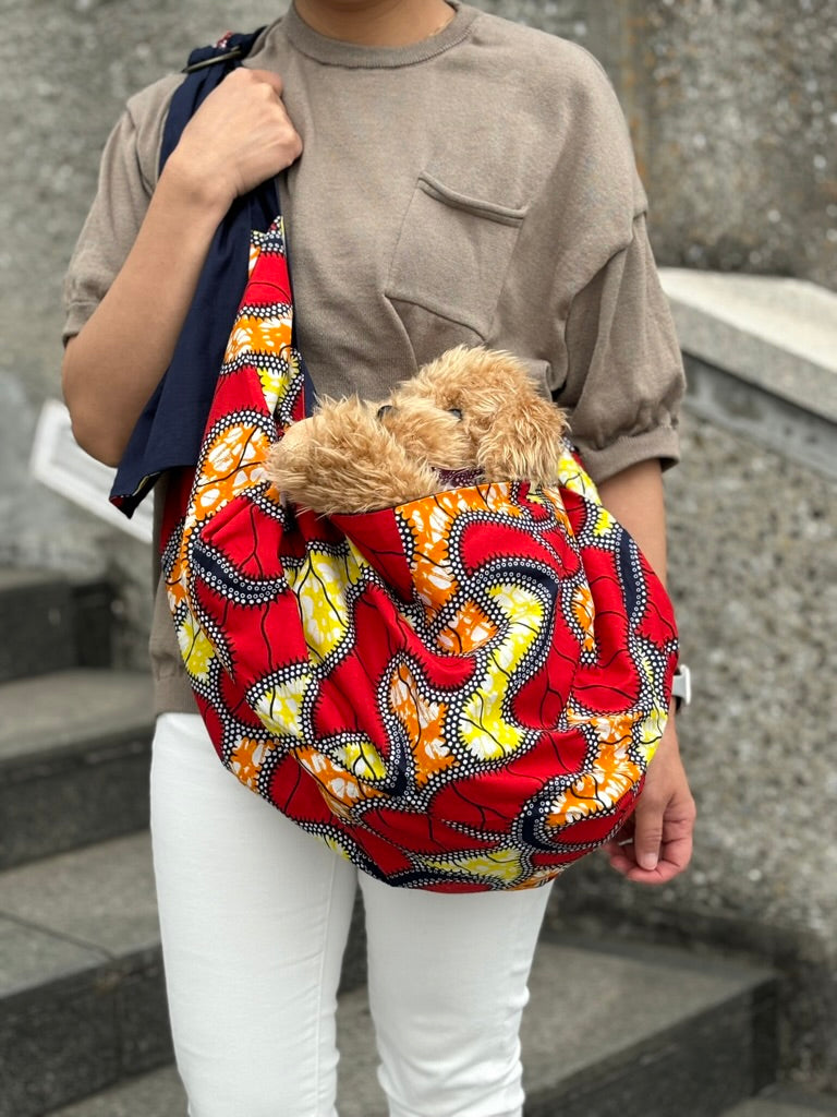 鮮やかな色合いの犬用スリング(抱っこ紐)です。