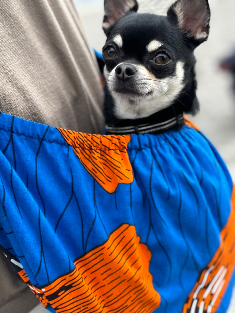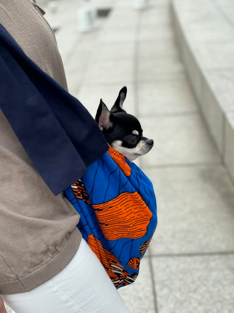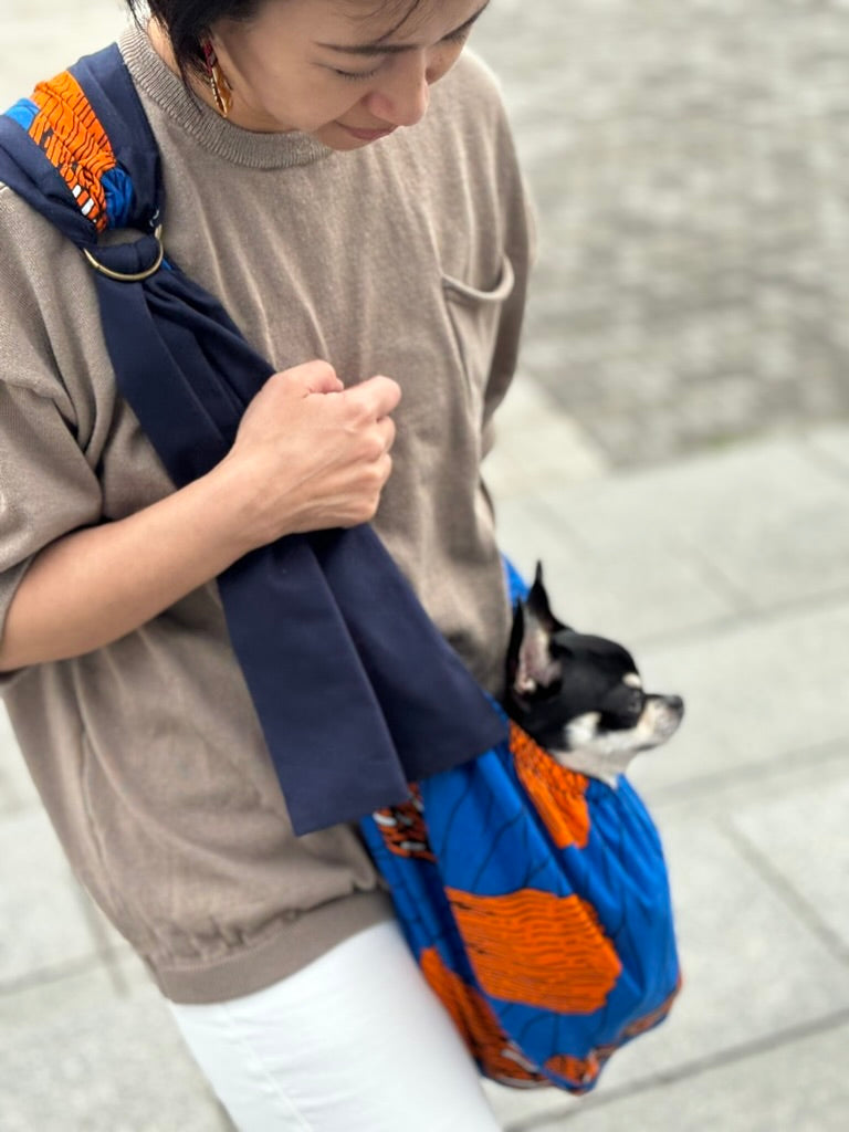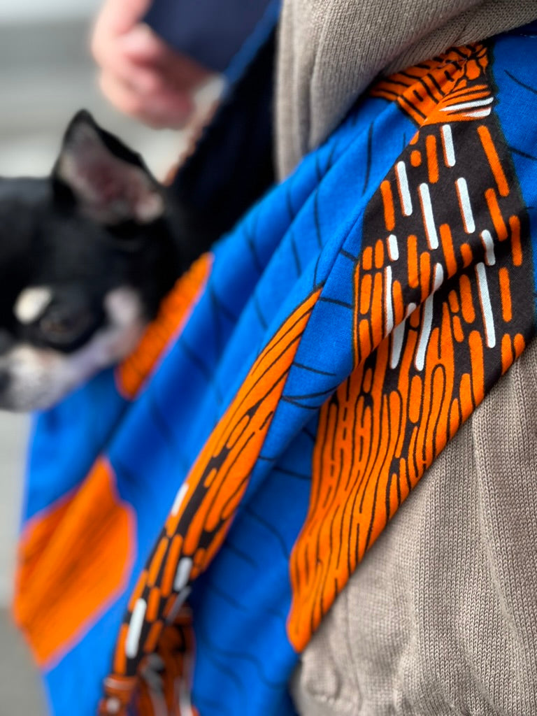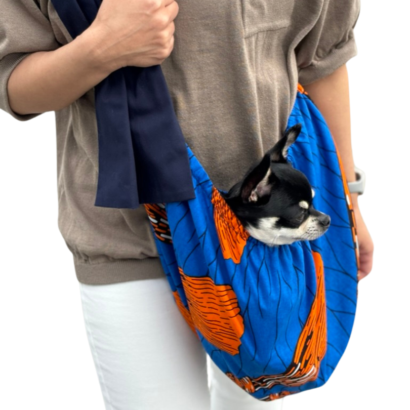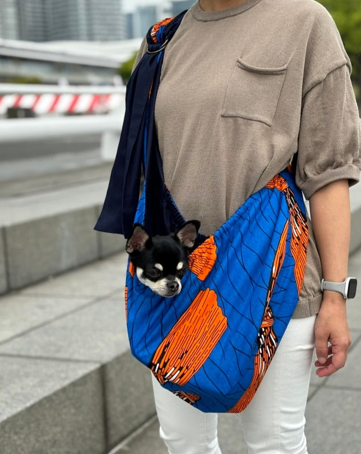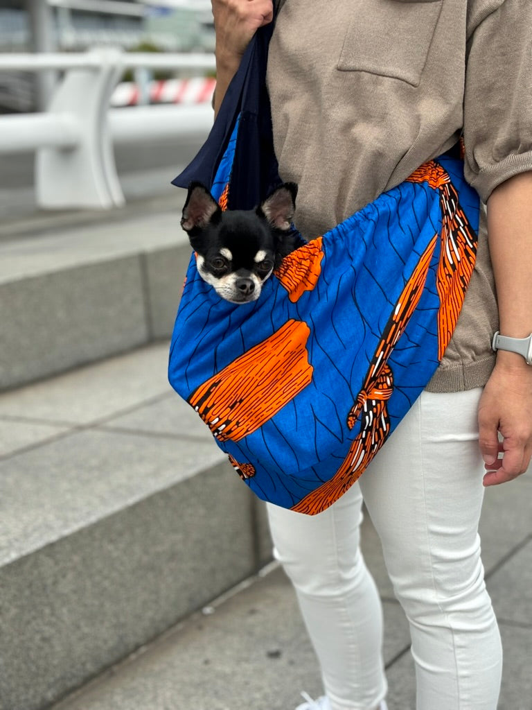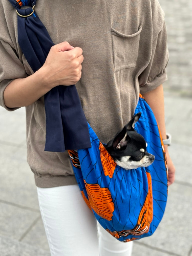 お散歩バッグ・いぬ用スリングM(抱っこ紐)_ブルー&オレンジ